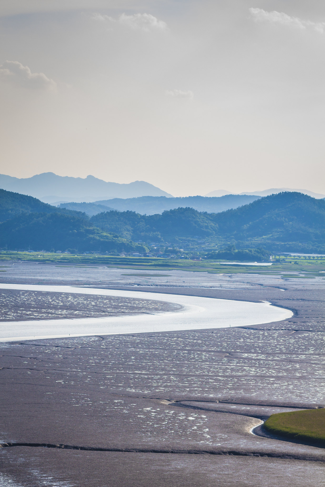 - S자 수로, 갯벌 물결, 갈대밭이 겹겹이 펼쳐짐