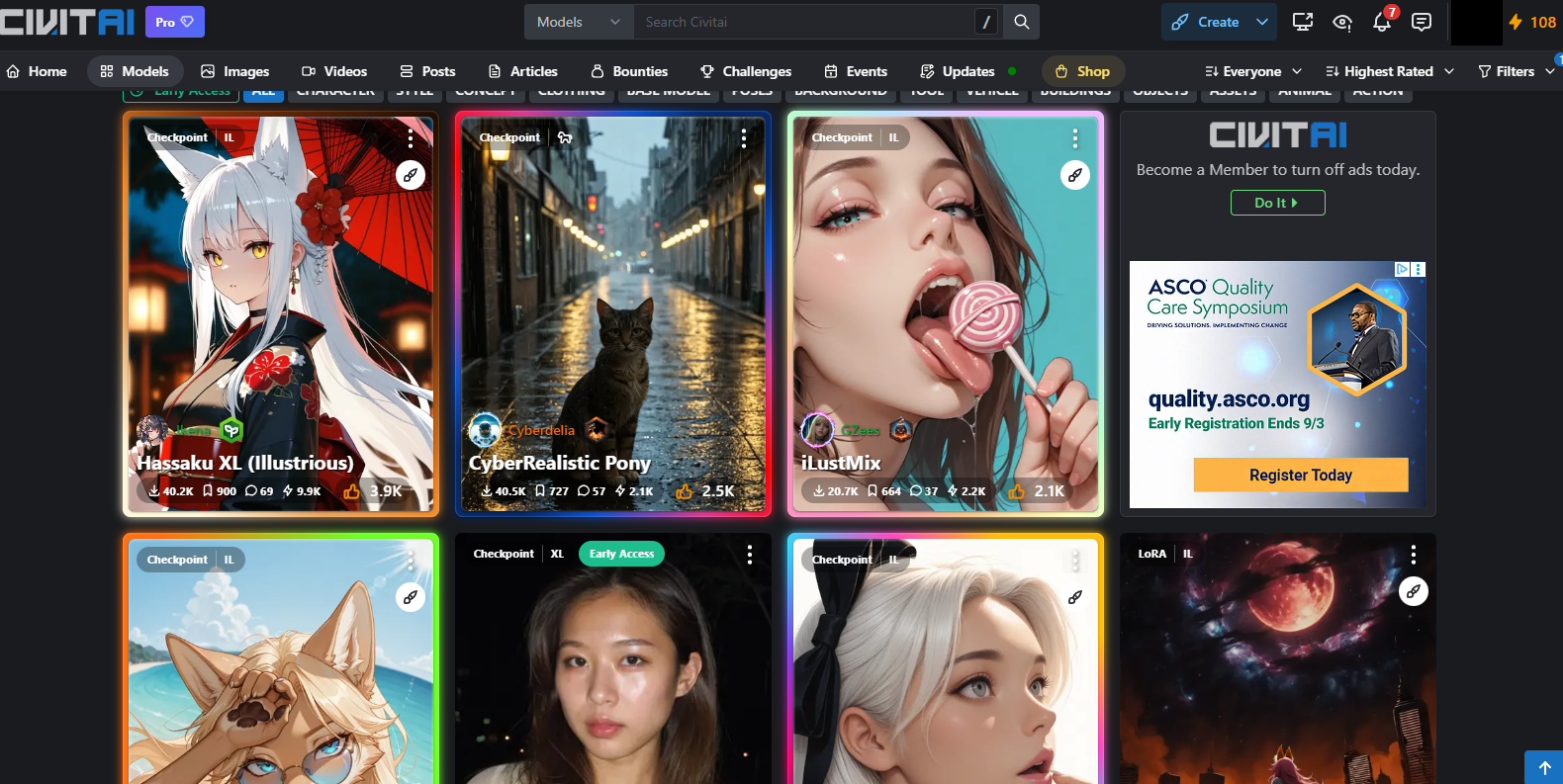 Civitai는 전 세계 크리에이터들이 자신이 튜닝한 모델을 공유하는 사이트입니다.
