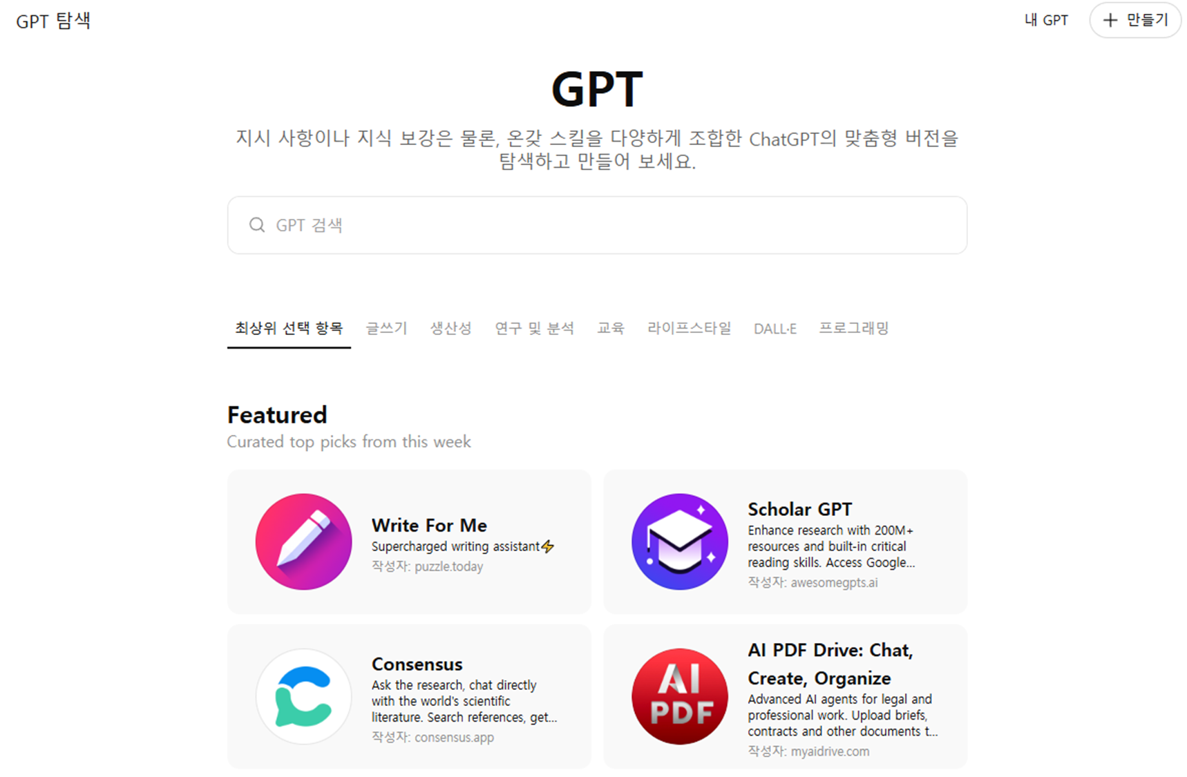 - 추천 GPT 목록에서 골라서 바로 실행할 수 있습니다.